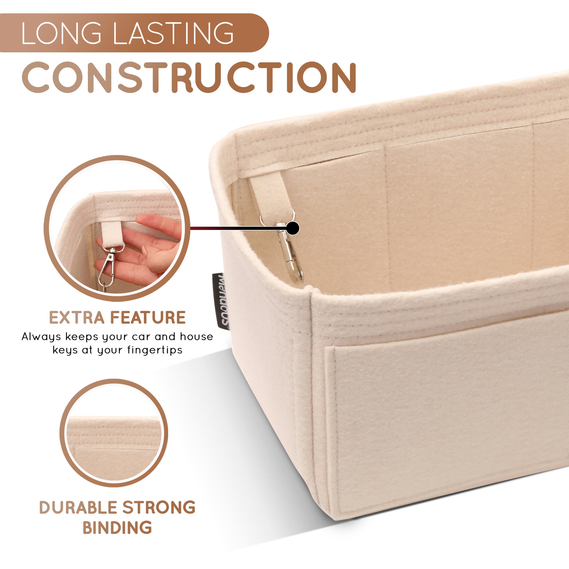 - DURABLE, LONG LASTING CONSTRUCTION with thick 3mm felt fabric that lasts and looks good for years of use. Helps hold your bag in shape with strength, durability, and flexibility. The insert features a protective inner lining that resists damage or stretching. Fabrics are high quality and resist unpleasant odors. It is easy to clean and helps reduce clutter inside your purse.