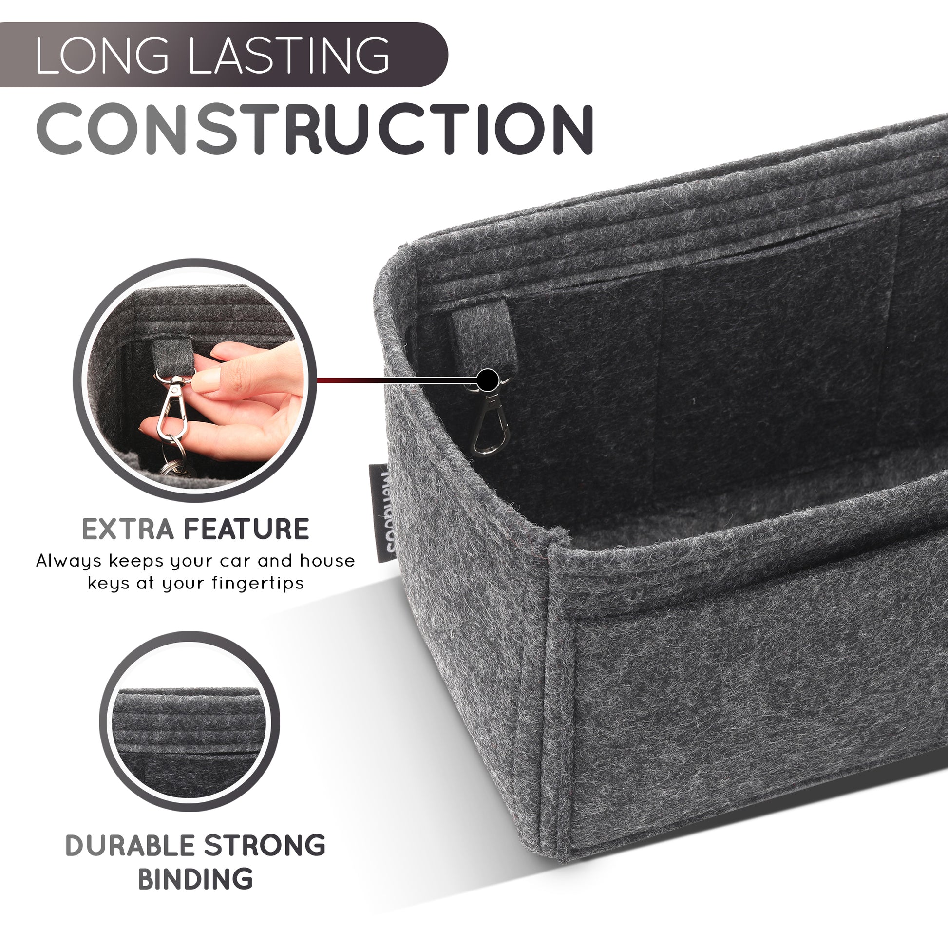 - DURABLE, LONG LASTING CONSTRUCTION with thick 3mm felt fabric that lasts and looks good for years of use. Helps hold your bag in shape with strength, durability, and flexibility. The insert features a protective inner lining that resists damage or stretching. Fabrics are high quality and resist unpleasant odors. It is easy to clean and helps reduce clutter inside your purse.